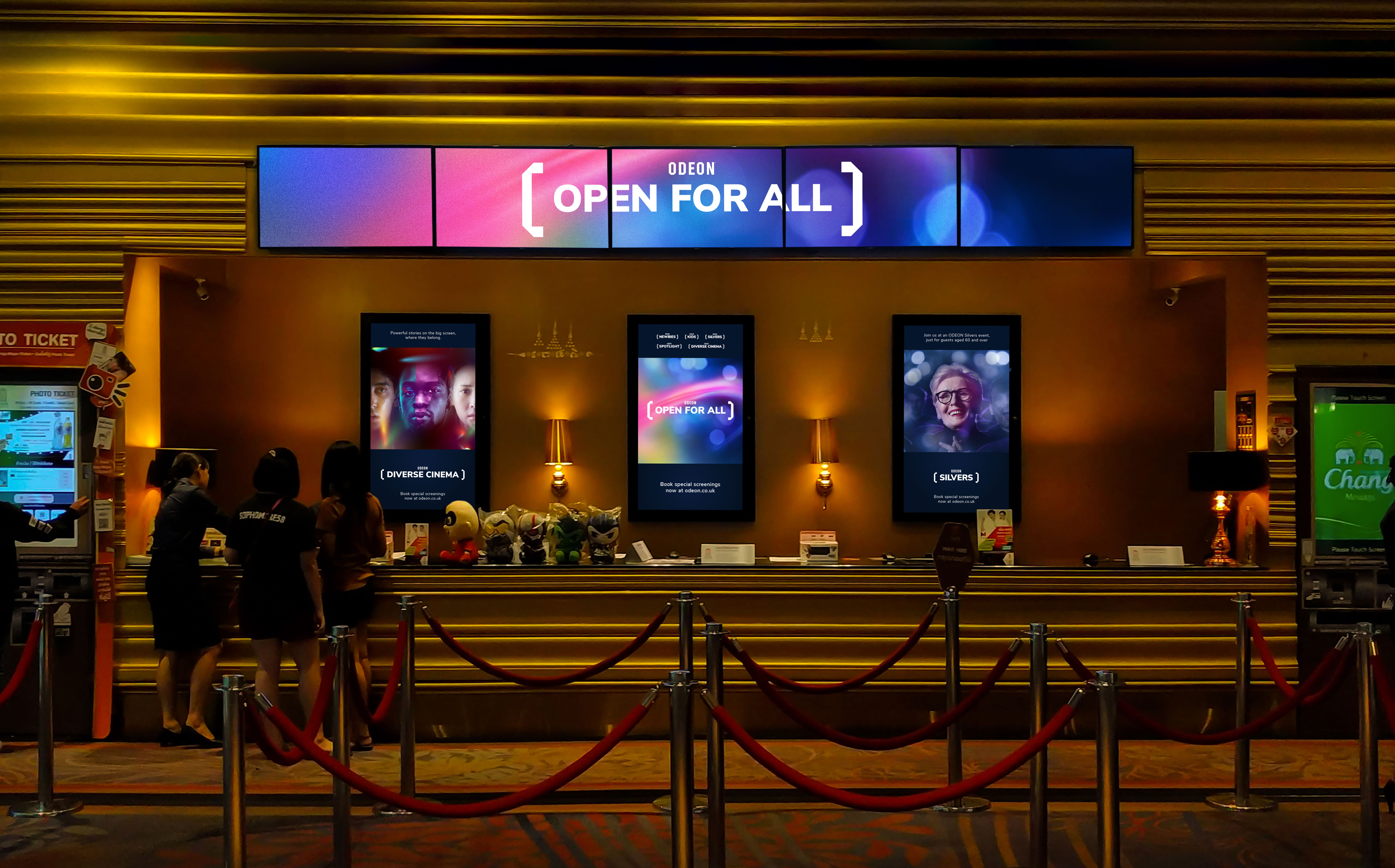 ODEON offers several different screenings which needed a design system to unite them and bring awareness to their philosophy – open for all.
