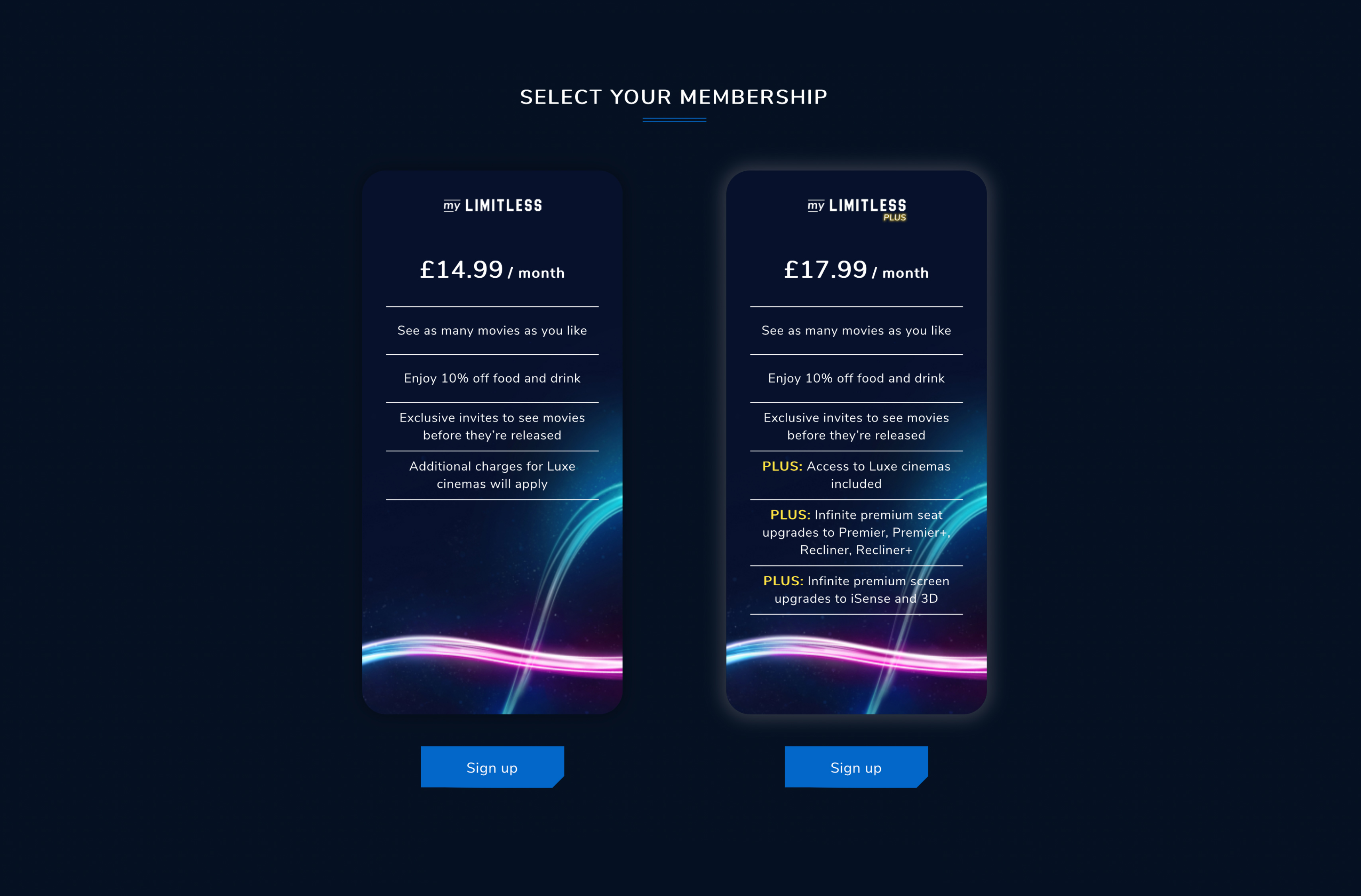 ODEON’s all access subscription was in need of an update. I created a vibrant new infinity graphic along with tight design guidelines, giving their all-access offering the sleekness it deserved.